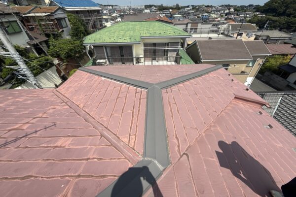 Information 2025.08.01 屋根工事(横須賀市) 施工前 施工後 既存コロニアル屋根が、老朽化により、雨漏りをしていました。しかも、増築がされていて、かなり複雑な形状の屋根です。 ↑棟板金を外すと、貫板が腐食していました。コーキングしてはいけないところにコーキングしてしまい、水が抜けなくなっていました。雨漏りの原因ともなります。 複雑な形のところも、ベテラン板金職人により、きれいに納まります。 Tweet Pocket « prev next »